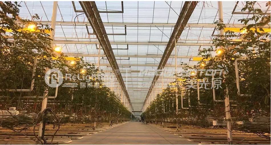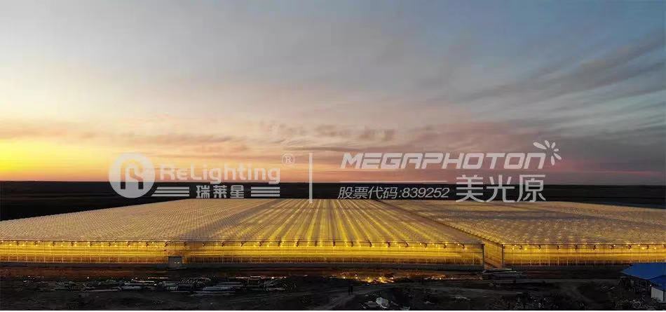夕陽西下,夜幕降臨,位于大慶市林甸縣長青林場的智能溫室內,近萬套瑞萊星小太陽系列補光燈徐徐亮起,照亮整個夜空,成為方圓幾十公里以內的唯一一處光明。這里,就是大慶宏福現代農業小鎮一期工程中占地12.5萬平方米的的1號智能溫室。